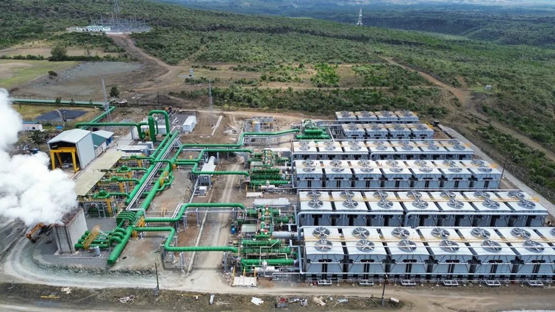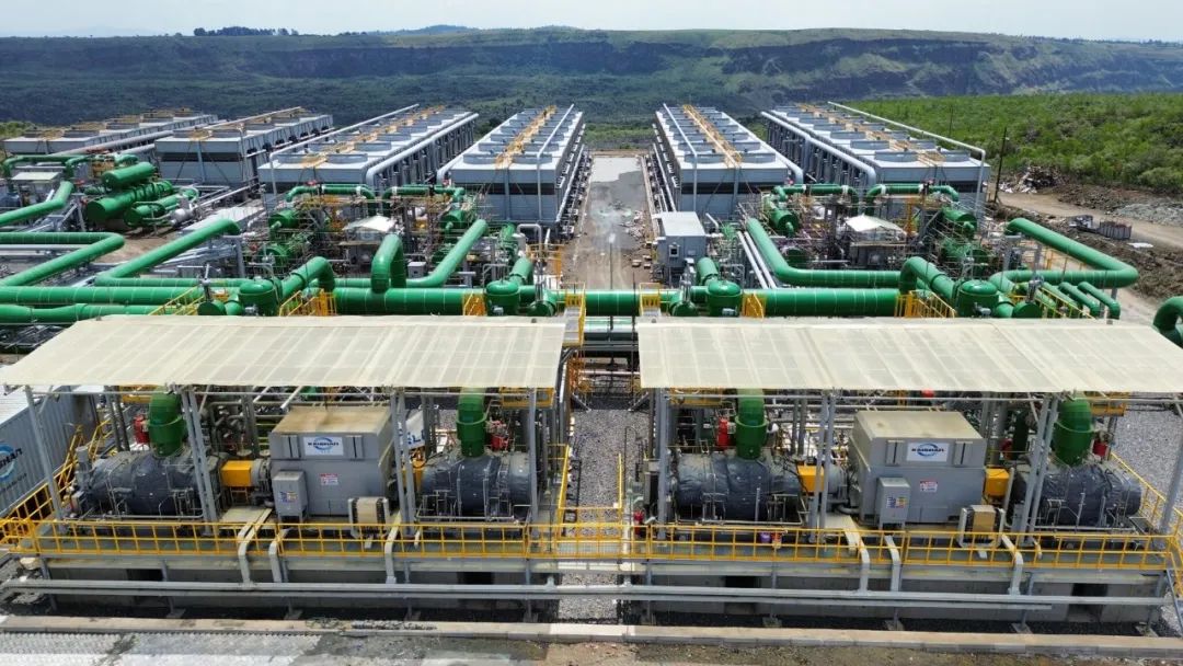 35 MWe 的 Sosian Menengai 地?zé)岚l(fā)電廠于 2023 年 8 月投入使用。該電廠使用兩臺(tái)開(kāi)山地?zé)嵴羝磯郝輻U膨脹機(jī),將廢氣排放到三個(gè)有機(jī)朗肯循環(huán)裝置中。圖片來(lái)源:開(kāi)山集團(tuán)