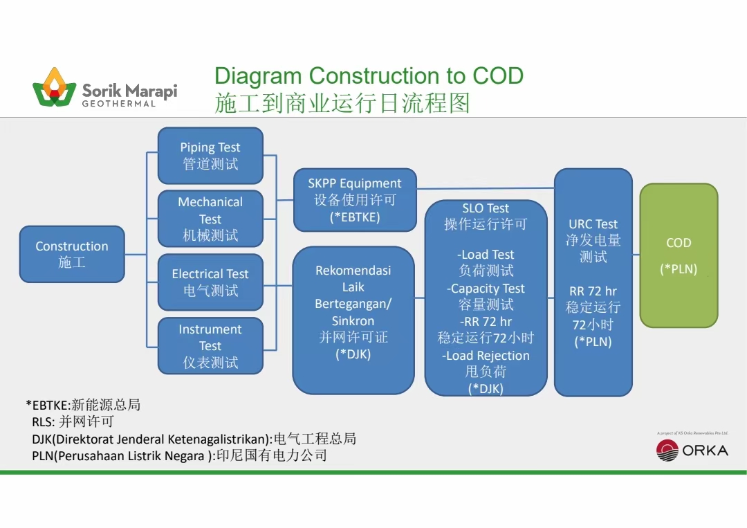 開山集團股份有限公司(以下簡稱“公司”)于2016年4月通過新加坡KSORKA 公司(以下簡稱“KS ORKA”)收購了SorikMarapi地熱能有限公司(以下簡稱 “SMGP”)。SMGP和印尼電力公司(以下簡稱“PLN”)的購電協議(以下簡稱 “PPA”)明確,SMGP項目規模240MW,分五期實施,基準電價8.1美分/千瓦時, 90%照付不議,運營期限32年。SMGP第一期機組45MW(±10%)已于2019年9月28日 投入商業運營(詳見巨潮資訊網公告:2019-049)。