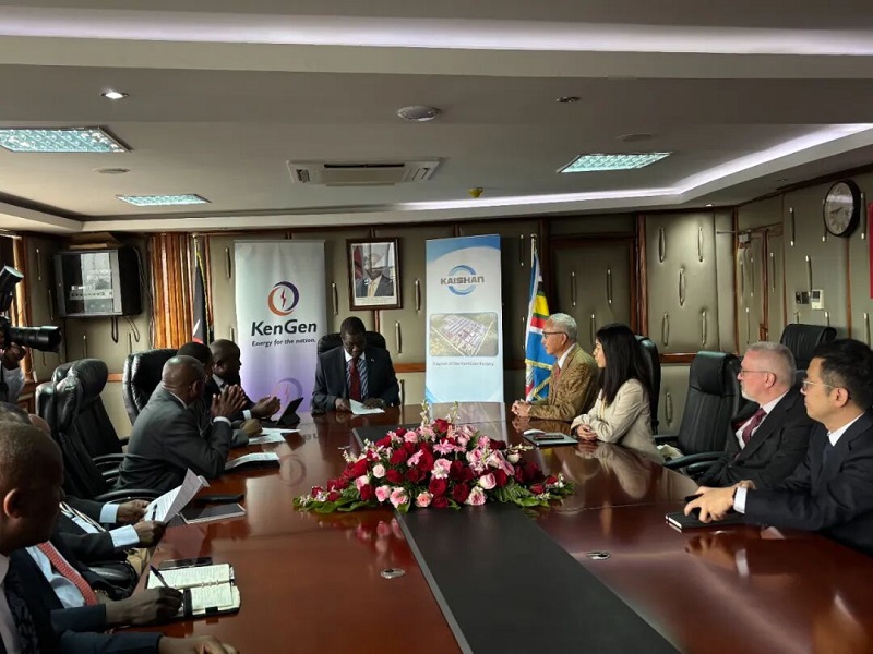 10月27日上午9時,肯尼亞共和國能源部。開山集團股份有限公司董事總經理湯炎博士與KenGen總經理兼CEO Eng,Peter Njenga分別代表各自公司簽署了《蒸汽供應協議》。肯尼亞共和國能源部長Hon,J.Opiyo Wandayi,EGH出席了簽字儀式。