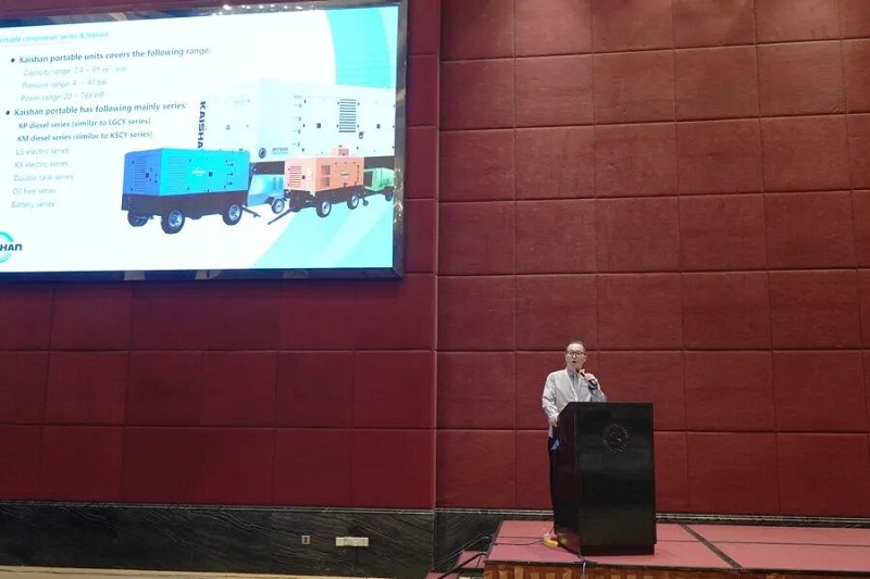 除此之外,公司各技術團隊負責人和業務板塊負責人在大會和各專場會議向與會經銷商全面介紹了涵蓋多領域的新產品、新技術和新方案,包括智能鑿巖機器人、各類大型鉆鑿設備及全系列智慧礦山開采設備、移動、電動固定干式無油螺桿空壓機、水潤滑無油單螺桿空壓機、超高能效兩級壓縮螺桿空壓機、電池驅動移動式螺桿空壓機、工程移動式螺桿空壓機、i-Kaishan 物聯網壓縮空氣系統集成方案、集裝箱式空壓站、離心式空壓機、40barg中壓組合機、工藝氣體壓縮機、磁懸浮系列鼓風機/真空泵/空壓機系列產品、激光切割機用制氮設備產品、凈化設備、VPSA制氧系統、制氮系統、熱泵與水蒸氣壓縮機、高壓往復壓縮機、壓力容器設備、環境工程系列產品以及高能效、低成本螺桿空壓機系列。